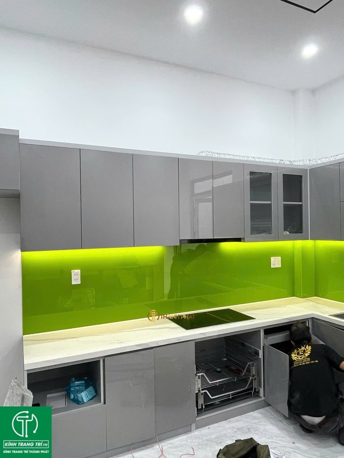 - Kính ốp bếp Thành Phát có trên 10 năm kính nghiệm về việc gia công thi công kính cường lực ốp bếp. Mang đến sự hài lòng hiệu quả cho khách hàng