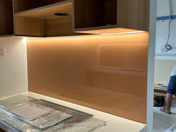 Kính ốp tường bếp là sản phẩm kết hợp giữa kính cường lực và sơn màu. Còn có tên gọi khác là kính màu cường lực. Kính bếp được gia công cắt kính bằng công nghệ CNC, cạnh kính được mài bóng trơn. Tôi luyện cường lực đạt chuẩn công nghệ Nhật Bản.