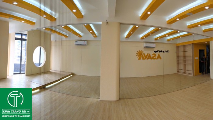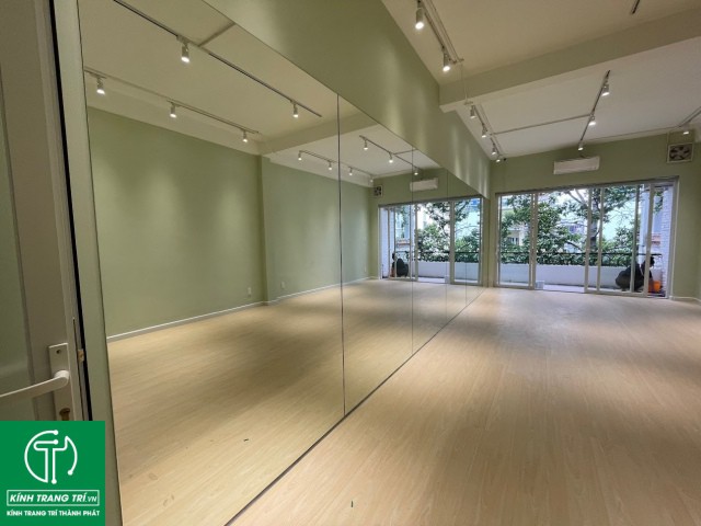 An toàn và thẩm mỹ: Gương chất lượng cao, được lắp đặt đúng kỹ thuật, đảm bảo an toàn và tăng tính thẩm mỹ cho phòng tập.