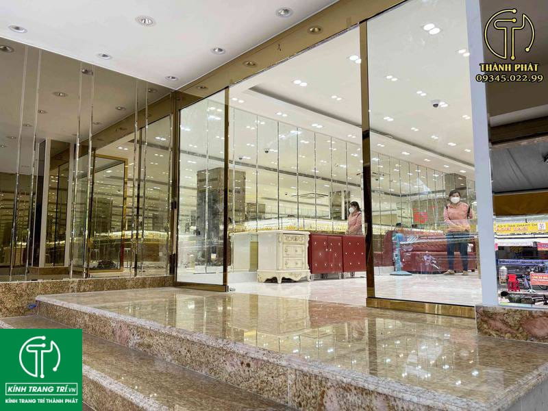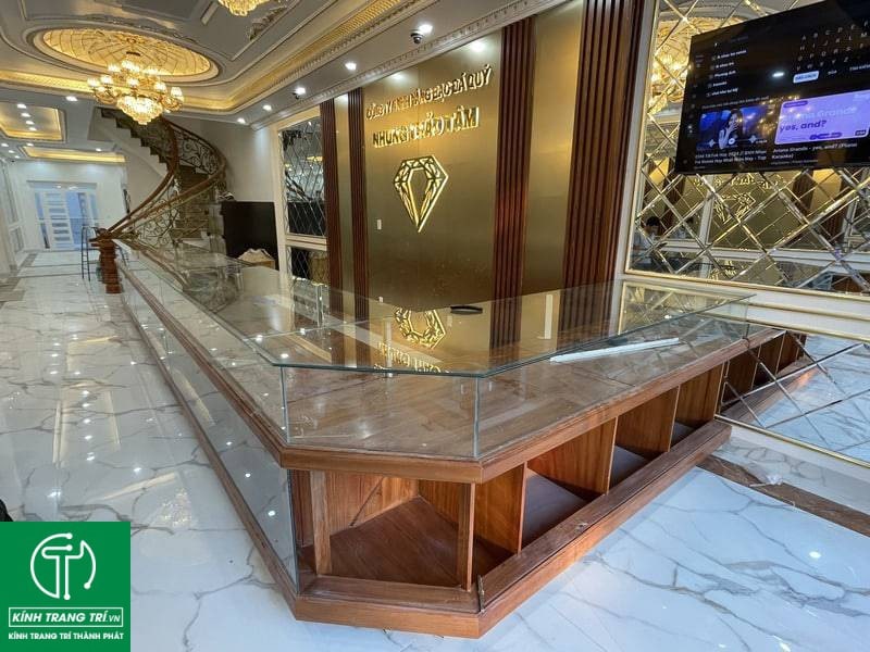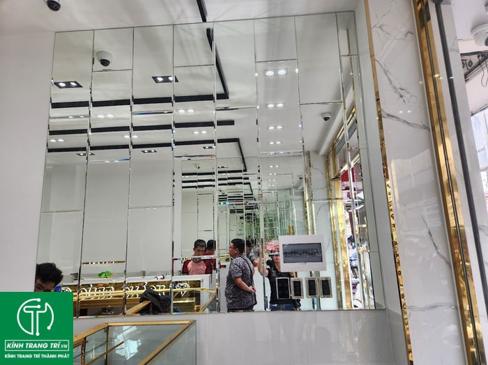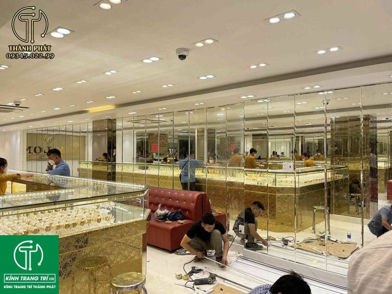 Hiện nay, các tiệm vàng bạc đá quý hầu như luôn sử dụng gương trang trí vì nó giúp tiệm vàng thêm lung linh hơn. Với gương tiệm vàng bạc, cửa hàng trang sức thì khách hàng sẽ dễ dàng nhìn thấy sản phẩm mà vẫn bảo đảm được các sả phẩm an toàn.