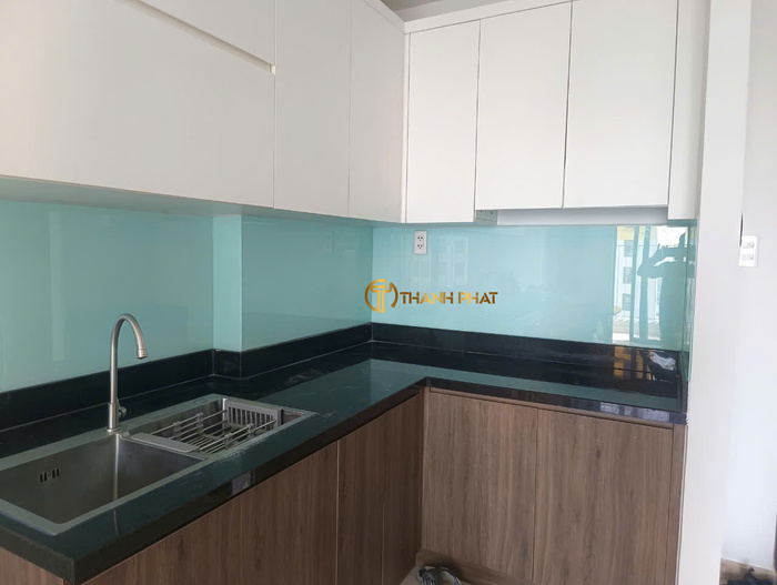 - Kính sơn ốp tường bếp màu xanh ngọc là sản phẩm kính được phủ sơn 1 mặt, tạo hiệu ứng màu sắc lên bề mặt kính, phụ hợp với nhiều không gian nội thất khác nhau.