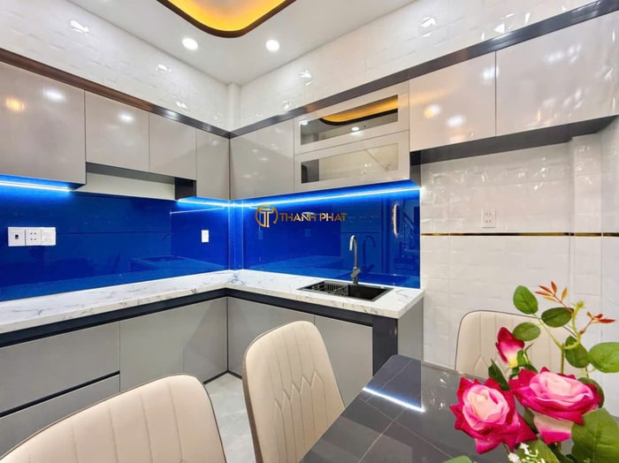 - Ưu điểm: Chống bám bẩn, dễ vệ sinh, tạo không gian bếp hiện đại.