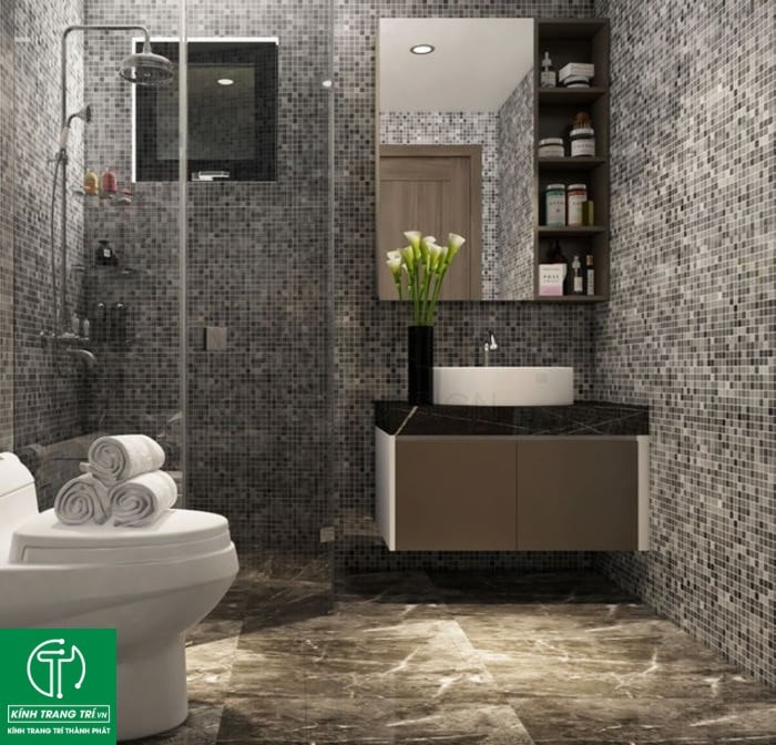 - Ưu điểm: Chống nước, dễ lau chùi, tạo không gian tắm sang trọng.