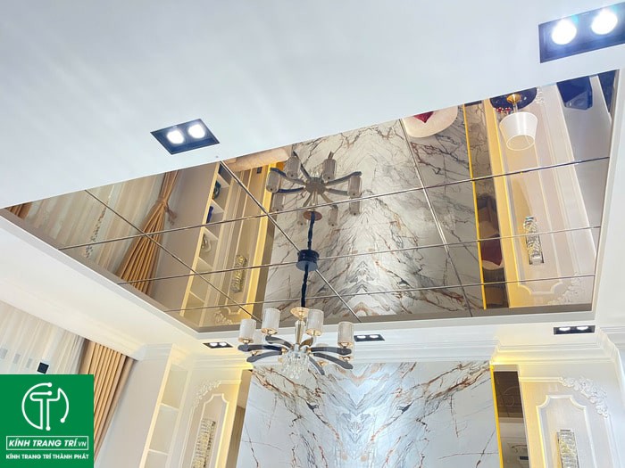 Trần gương tạo cảm giác rộng mở, tăng chiều cao cho không gian. Khi dùng gương trang trí này, căn phòng của bạn sẽ có 1 cảm giác sang trọng. Tăng thêm sự thoải mái, thư giãn cho cho các thành viên trong gia đình.