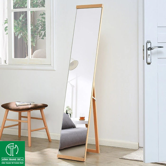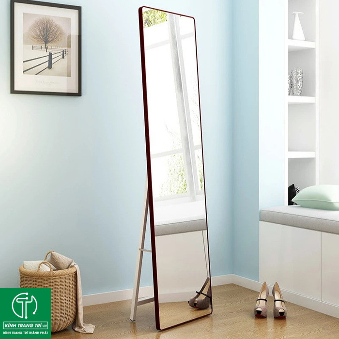 - Gương đứng soi toàn thân với thiết kế viền khung gỗ, kim loại hoặc nhựa có thể là điểm nhấn cho phòng ngủ, phòng khách hoặc phòng thay đồ.